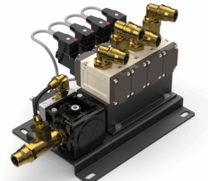 The compact QTIS 4- or 6-way valve manifold to inflate and deflate your tyres with a single line.
